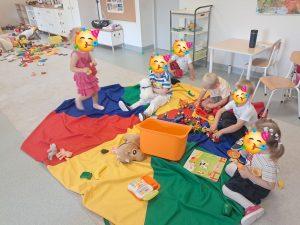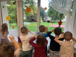 Dziś w grupie Biegusiów rozmawialiśmy o jesieni.Dzieci poznawały barwy tej pory roku, przyglądały się przez
