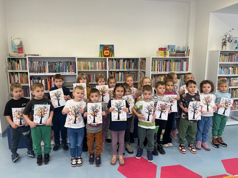 Dzieci z naszego przedszkola wzięły udział w wyjątkowych zajęciach zorganizowanych w Miejskiej Bibliotece Publicznej. Tematem spotkania był jesienny las, a