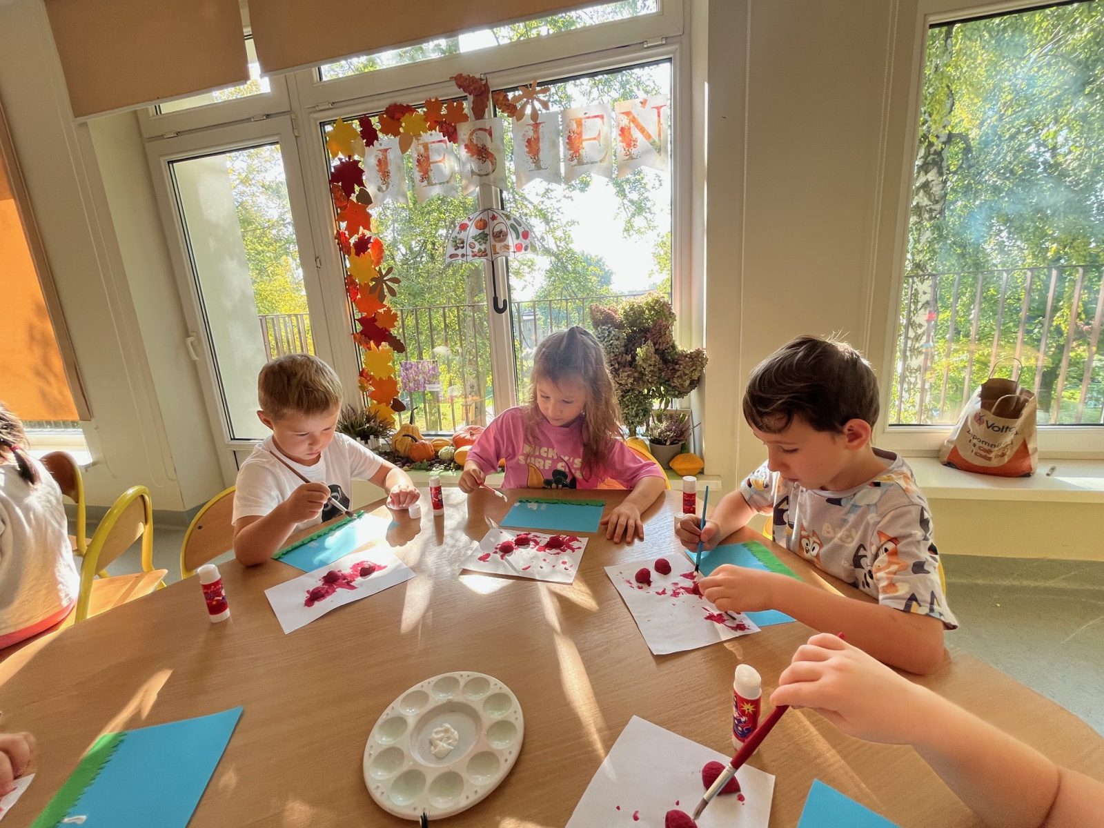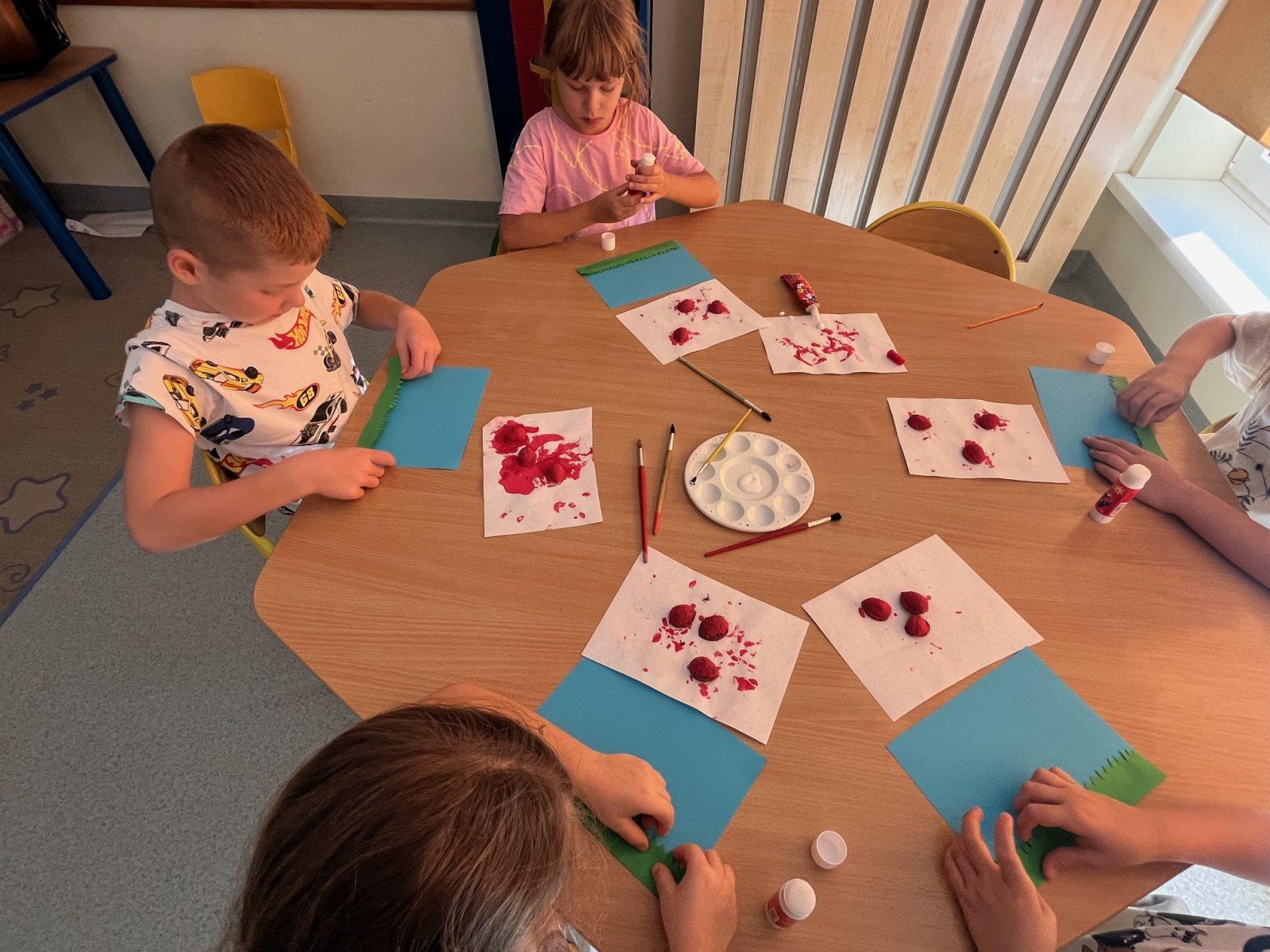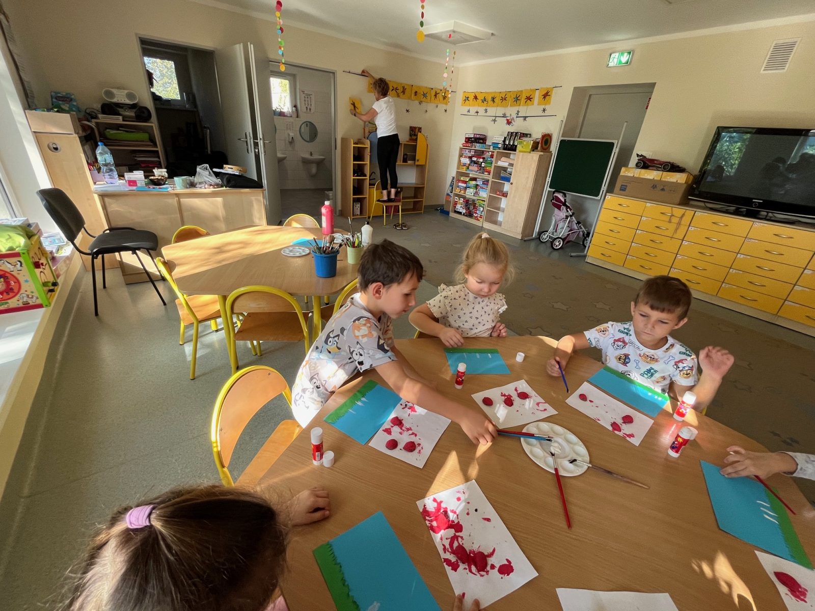 Dzieci wykorzystały nietypowe materiały – łupiny orzechów włoskich, które stały się kapeluszami grzybków. Do wykonania prac użyto także farb, którymi zuchy ozdabiały swoje grzyby, nadając im wyjątkowe kolory i wzory. Zuchy z dumą prezentowały swoje dzieła, a salę wypełnił zapach farb i orzechów, przypominając o urokach jesieni.