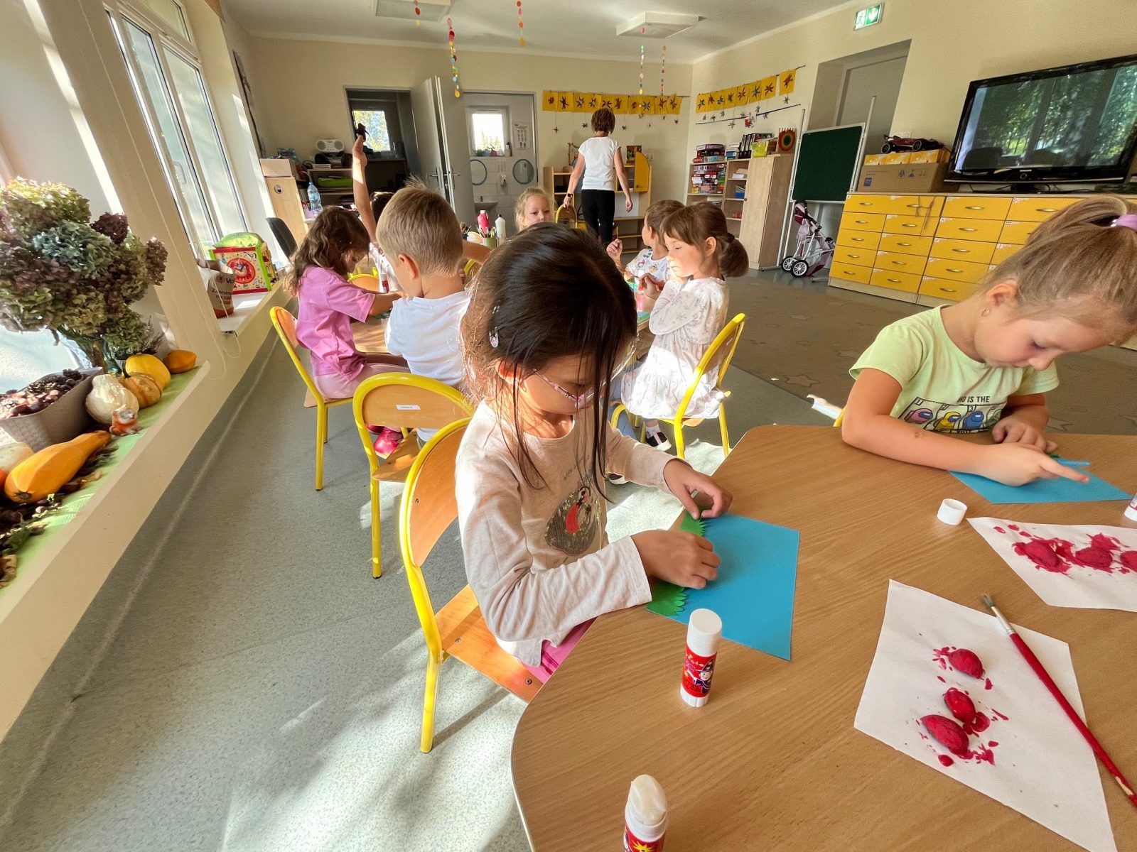 Podczas dzisiejszych zajęć Zuchy wykonały piękne prace plastyczne o tematyce jesiennej pt. „Grzyby w lesie”. Inspiracją do pracy była kolorowa, pachnąca jesień oraz wspólne rozmowy o darach lasu.