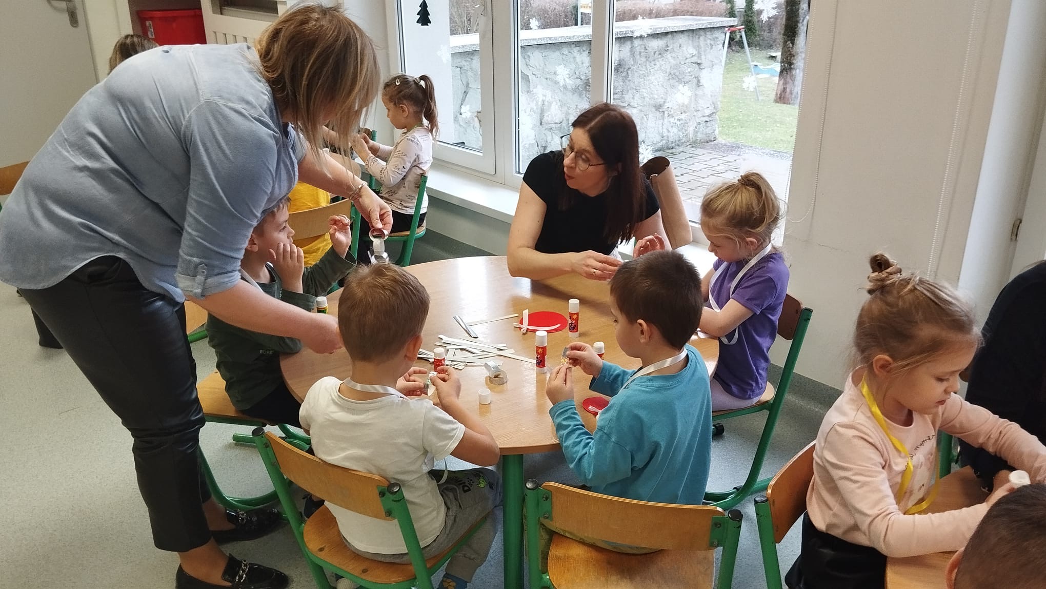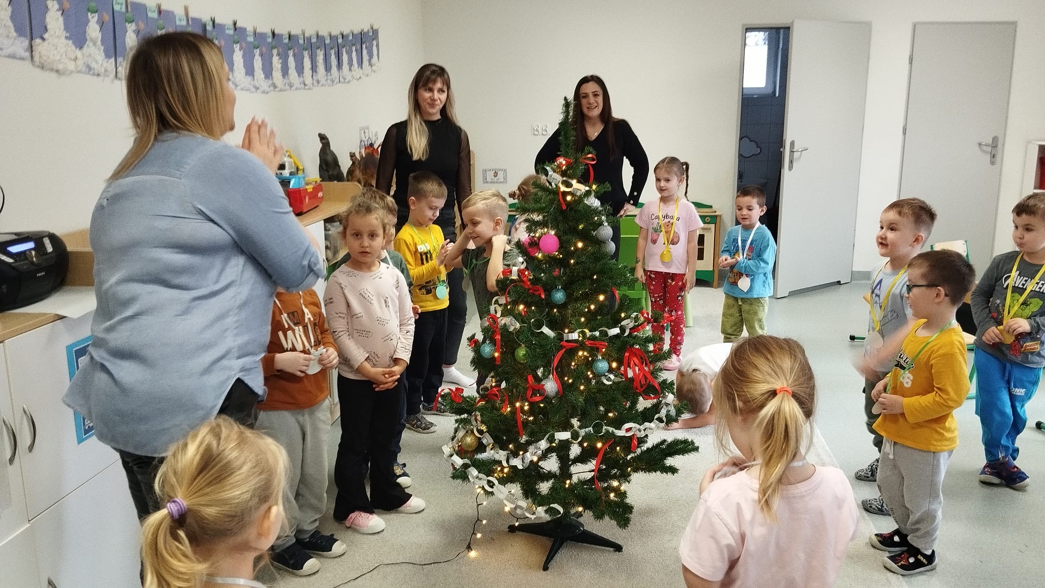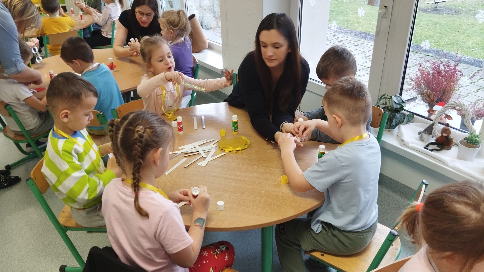 Zajęcia otwarte dla rodziców były wyjątkowym i radosnym spotkaniem. Dzieci wraz z rodzicami wspólnie tworzyły piękny, łańcuch na przedszkolną choinkę. Wspólna praca sprawiła wszystkim wiele radości, sprzyjała integracji oraz wzmacniała więzi rodzinne. Dzieci z dumą prezentowały swoje umiejętności, a rodzice mieli okazję aktywnie uczestniczyć w życiu grupy. Powstały łańcuch stał się piękną ozdobą wspólnej choinki i symbolem współpracy oraz świątecznej atmosfery.