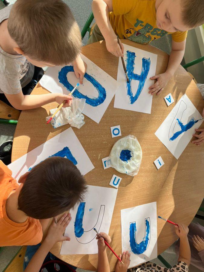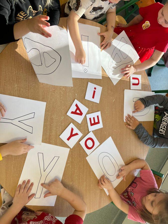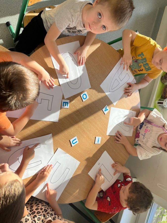 Biegusie utrwalają umiejętność czytania samogłosek w ramach Innowacji Pedagogicznej: „ Wesołe sylabki PP-3” – z wykorzystaniem Metody Symultaniczno- sekwencyjnej nauki czytania prof. J. Cieszyńskiej.